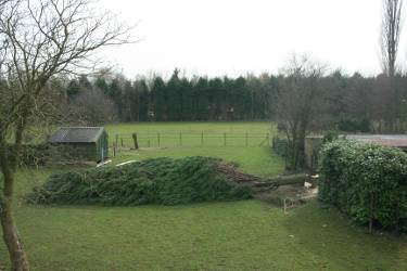 Omzagen van een 20 meter hoge thuja aan de Rijnbandijk